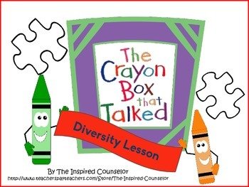 There are also dozens of lessons for all age groups on Teachers Pay Teachers to discuss related topics in a safe, comfortable setting. The Inspired Counselor has a companion lesson for the book The Crayon Box That Talked. (Pre-K -2nd grade) Counselor Keri has an adventurous lap book lesson for grades 4-6. My lesson is geared towards grades 5-9 and explores how to celebrate differences and break free of stereotypes.