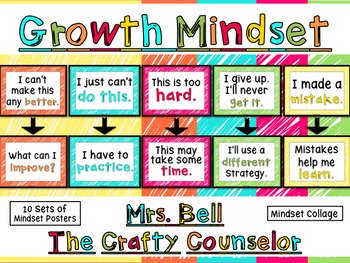 Teach these concepts over and over. It is tough to change someone’s mindset when they are use to thinking a certain way. Repetitively teaching these concepts are the best way to make the ideas stick and create a growth mindset in students. – Mrs. Bell, The Crafty Counselor